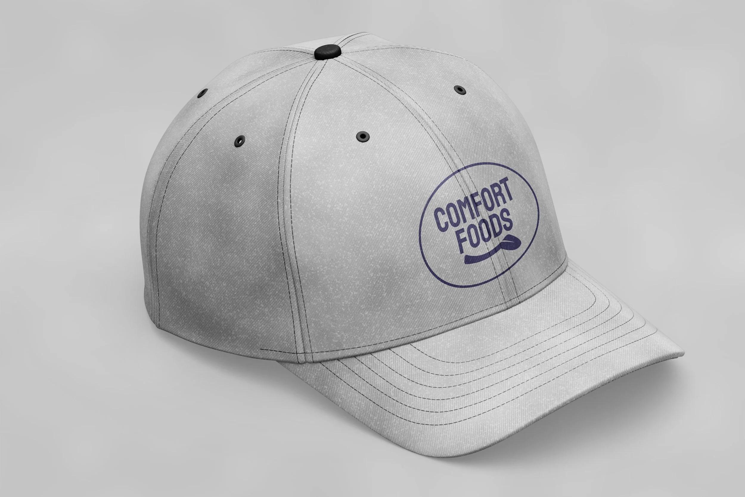 For a project in branding class, we were tasked to rename and rebrand an existing company. I chose to rebrand a food distributing company called “comfort foods” to schools, churches etc. I made the decision to make a friendlier branding that would attract not only kids, but parents. During this project, I created a business card and branded on paper bags and a hat