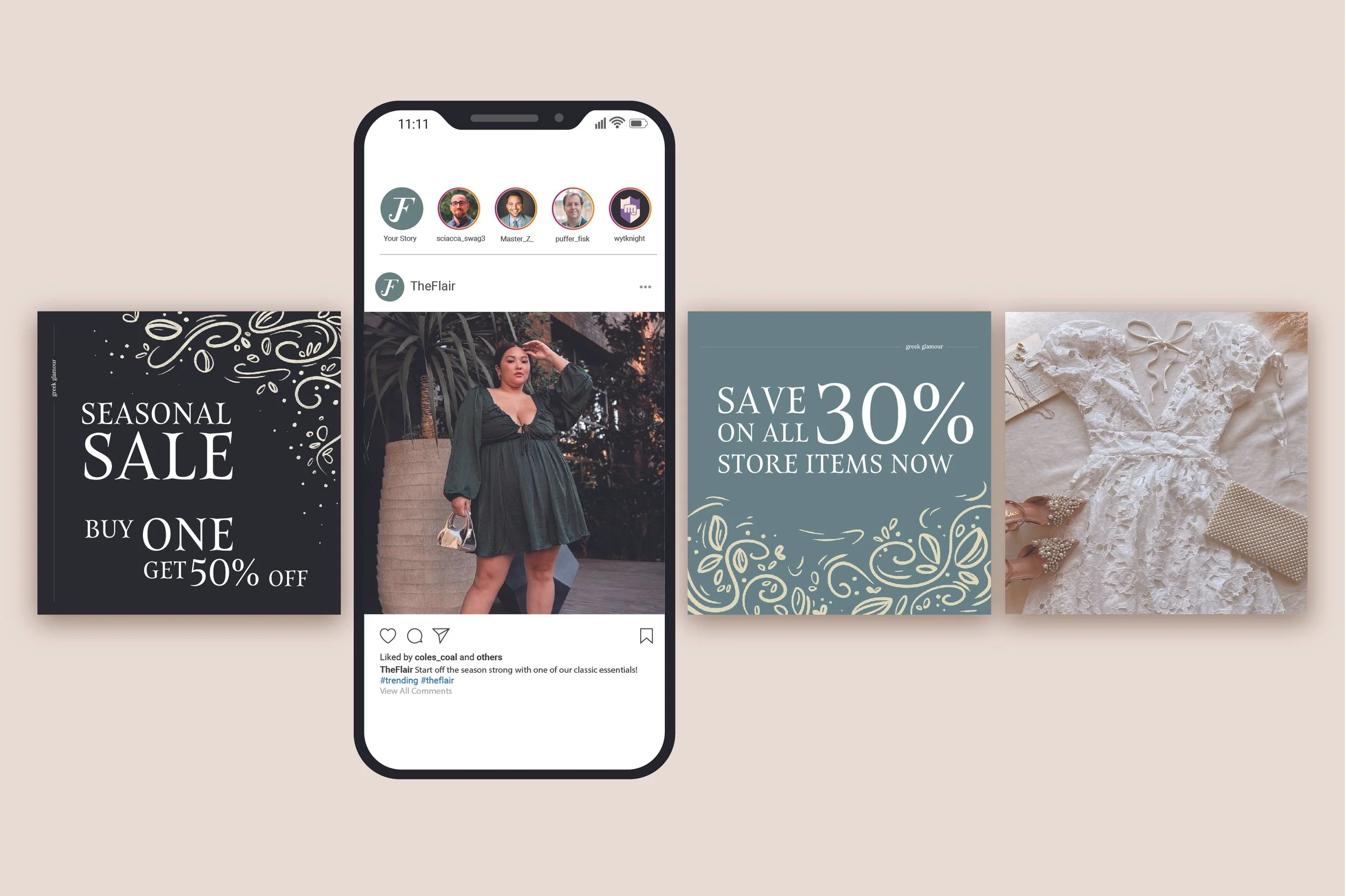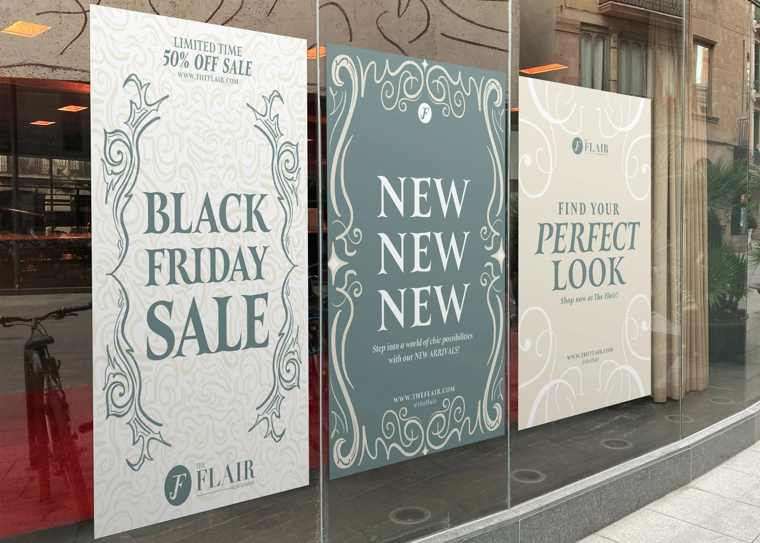 For a group project in branding class, me and my two other partners created the boutique βThe Flair.β This boutique was to be located in downtown Birmingham and caters to college students in greek life. This boutique has formal wear and semi-formal wear for both sorority and fraternity functions.
