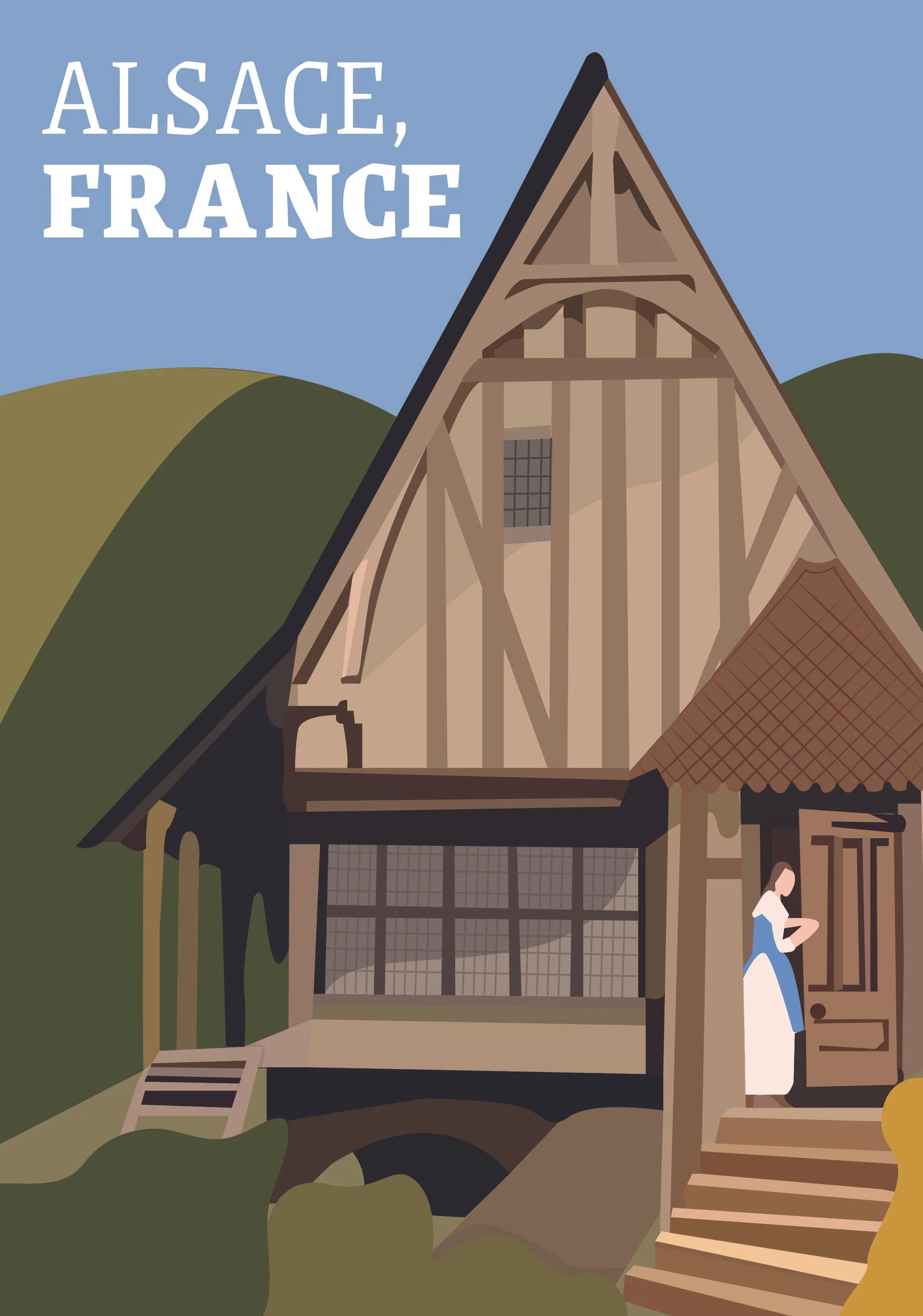 For my independent study in Illustration, I tasked myself to create three postal stamps. I decided while creating the project to make them destinations that inspire places in Disney movies. I chose France for Beauty and the Beast, India for Aladdin, and Denmark for The Little Mermaid.