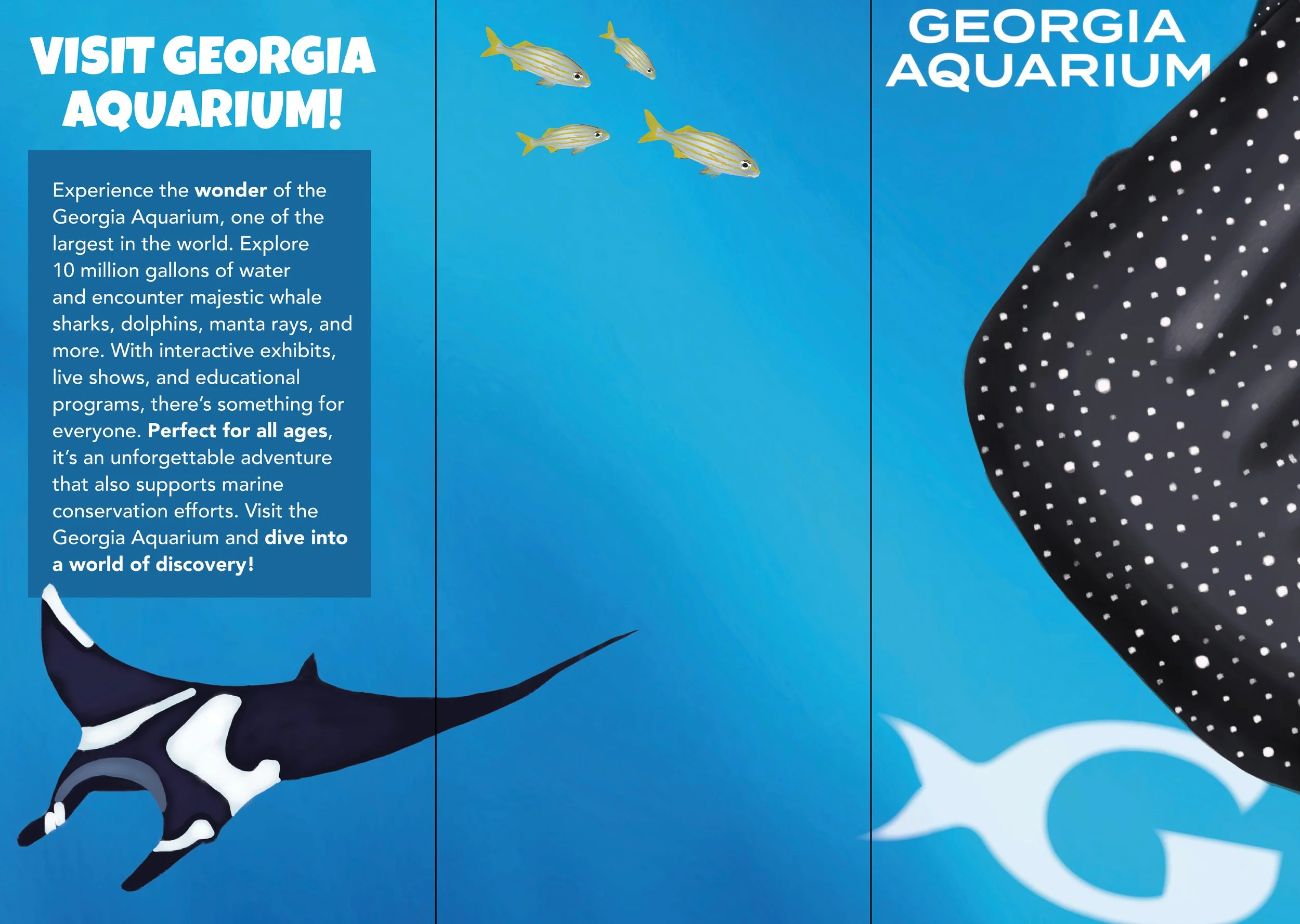 For my independent study in Illustration, I tasked myself to create a trifold brochure on the Georgia Aquarium and the amazing animals they have in the exhibits.