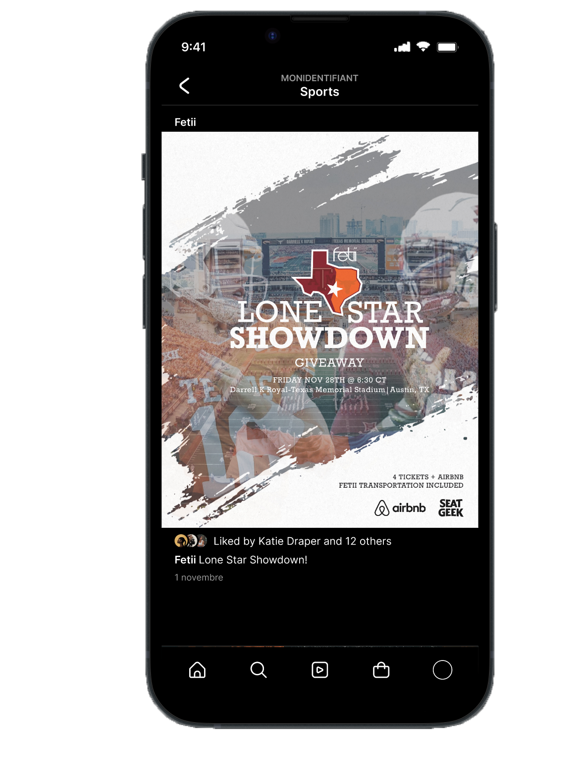 I was challenged to create both an instagram post and story for the company Fetii. I created an original logo showcasing the state of Texas with the two rivaling universities’ logos in them. This social media duo was created for an upcoming giveaway the company was having. I created the Instagram post to promote the giveaway and the Instagram story to showcase a schedule for the week of the football game.
